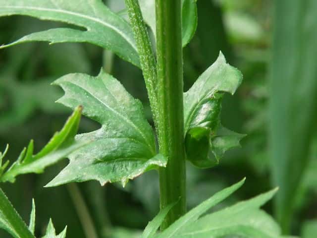| ▼裂片には鋸歯があり、表裏は無毛。 | ||