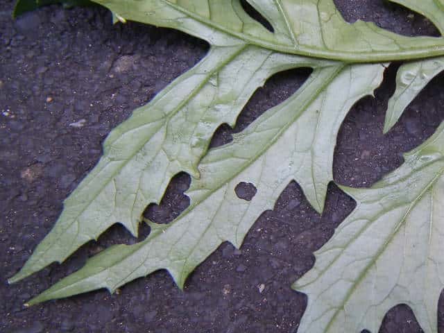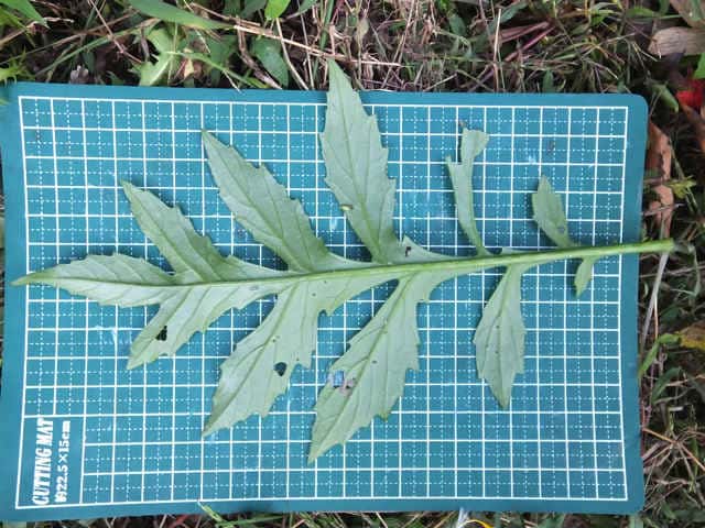 | ▼冠毛には上向きの刺がある。 | ▼葉は羽状に深裂する。 | ▼葉は長さ約22cm。 |