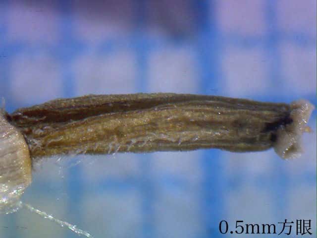 | ▼冠毛は約1cm。 | ▼果実は長さ約2.5mm。 | ▼果実にはまばらに毛がある。 |