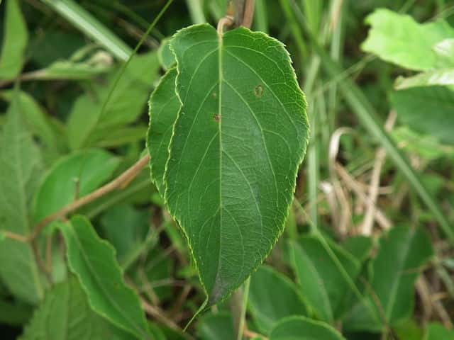 | 落葉つる性木本 本州〜九州の山地の林内や林縁に生える。枝ははじめは褐色の軟毛が密生するが、のちに無毛。葉は互生。葉身は長さ6〜10cm、幅4〜7cmの楕円形〜広卵形。厚い革質で、ふちには刺状の鋸歯がある。裏面の脈上にはかたい毛が生える。葉柄は長さ2〜8cmで淡紅色を帯び、かたい毛と軟毛がある。上部の葉腋に白い花を下向きにつける。花は直径1〜1.5cm。花弁と萼片は5個。葯は黒紫色。両性花の花柱は線形で多数あり、放射状に開出する。果実は液果。長さ2〜2.5cmの広楕円形、10〜11月に緑黄色に熟す。種子は多数あり、長さ2mmほどの楕円形。花期は5〜7月。 冬芽は、隠芽。隆起した葉枕に隠れている。(樹に咲く花) 学名は、Actinidia arguta マタタビ科マタタビ属 葉裏が粉白色のものをウラジロマタタビといい、関東以西〜九州に分布する。樹皮は褐色を帯び、表面は粗く繊維質。 サルナシの樹皮は灰白色で、滑らかで薄くはがれる。 |