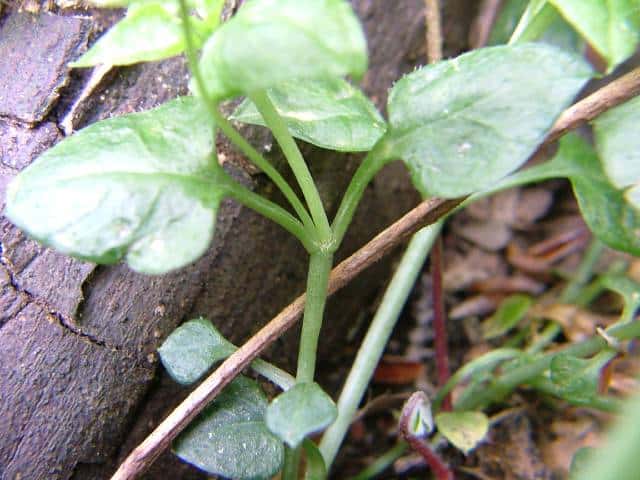 | ▼短毛が散生する。 | ▼茎は無毛、葉柄の基部に小さな毛がある。 | |