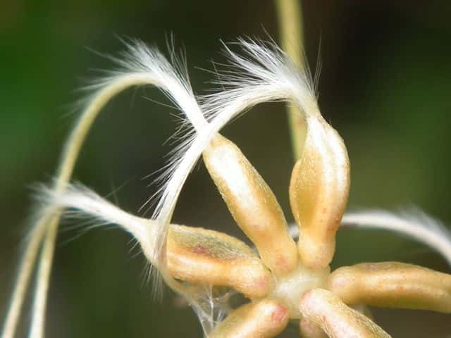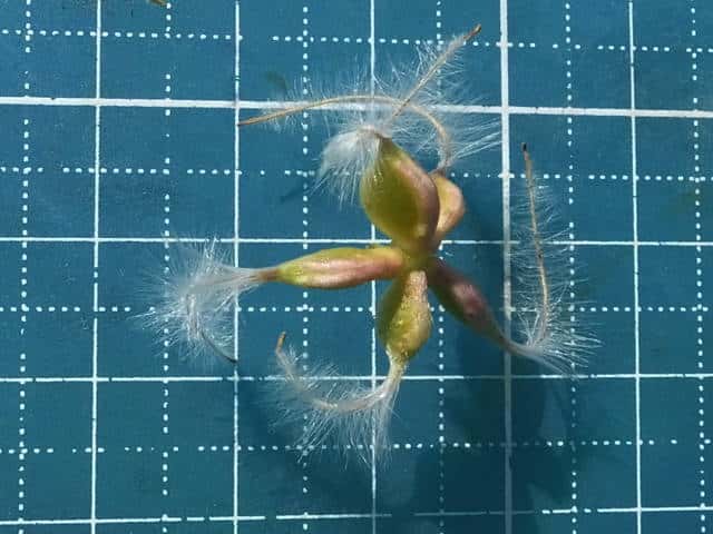 | ▼宿存する花柱は長さ約3cm。 | ▼果実は扁平で、長さ約7mm。 | ▼果実の周囲が厚くなる。 |