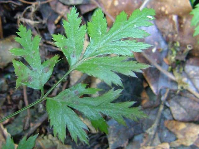 | ▼2008年3月8日 八雲 | ▼葉は2回3出複葉 | ▼小葉は更に切れ込む。 |