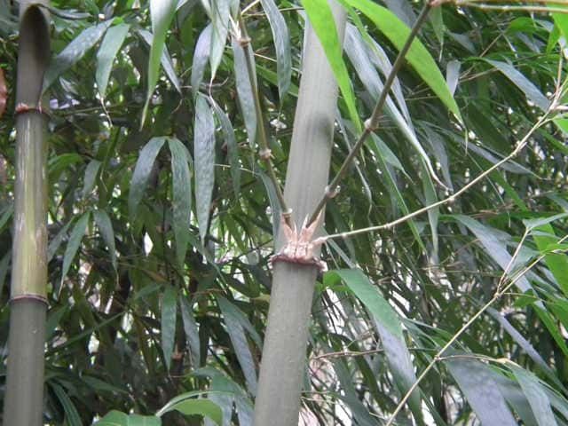 | 竹 中国原産。主に関東地方以西で栽培される。高さ5〜7m、稈の直径3〜4cmになる。断面は角の丸い四角形。稈面に小さな刺が散在し、なでるとざらつく。下部の節から気根をだす。中部以上の節には発達の悪いいぼ状の気根が輪生する。枝は1節から3〜7個でる。葉身は長さ14〜20cm、幅14〜20mm。先端は垂れ下がる。裏面にははじめ毛がある。肩毛はほぼ直立する。葉耳は発達せず、葉舌は低くほとんど見えない。筍は秋にでて美味。(樹に咲く花) 学名は、Chimonobambusa quadrangularis イネ科カンチク属 |