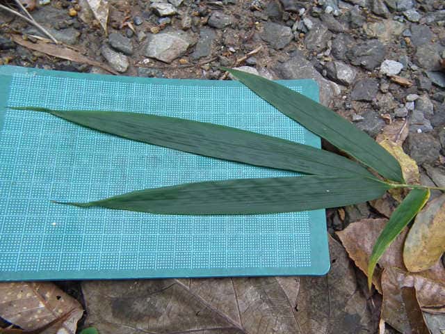 | ▼葉の先端は垂れ下がる。 | ▼葉は長さ約26cm、幅約2cm。 | ▼肩毛は直立する。 |
