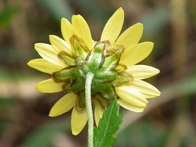 | ▼頭花は直径約2.5cm。 | ▼舌状花、筒状花とも冠毛はない。 | |