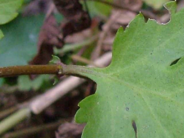 | ▼葉は深裂しない。 | ▼葉柄基部の仮托葉は小さい。 | |