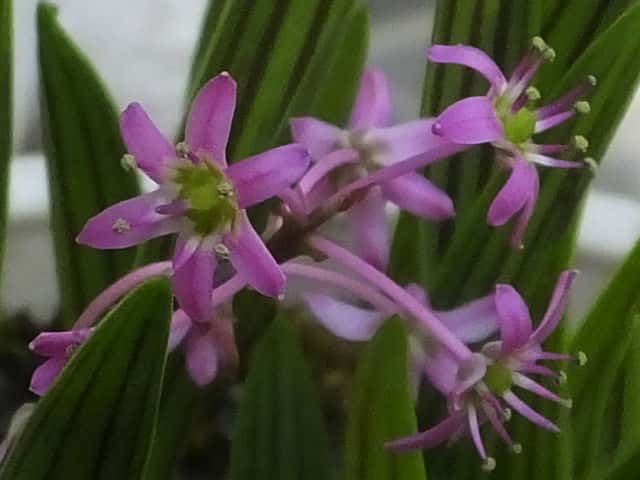 アフリカ南部原産。高さは10〜15cm。葉は線形または挟楕円形、長さ10〜20cm、縦縞模様がある。総状花序にピンク色の直径1cmほどの花をつける。花は6弁の鐘形。冬には葉がなくなり、春になるとまた芽吹く。花期は4〜5月。