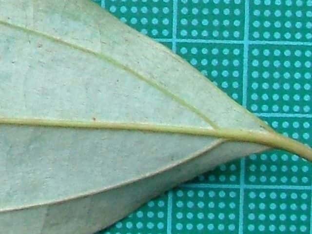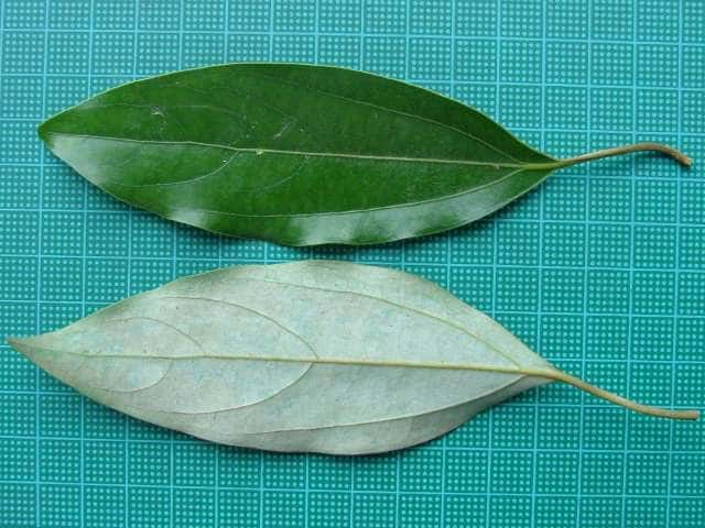 | ▼2007年11月4日 雄花 玉湯 | ▼葉身は長さ約12cm、葉柄は約3cm。裏面は灰白色。 | |