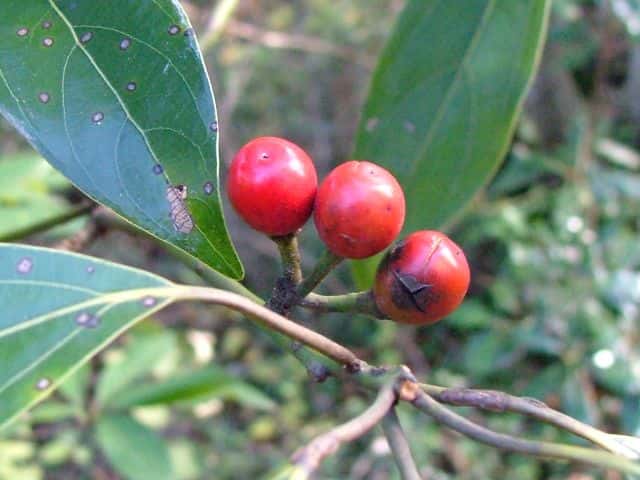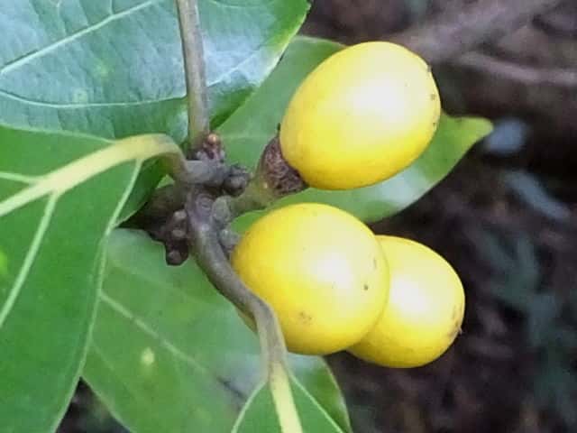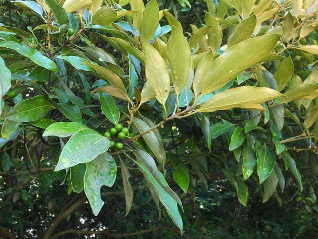 | ▼2015年10月14日 色づいた果実 島根 | ▼品種 キミノシロダモ | 果実は長さ約1.5cm。 |