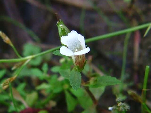 1年草 本州〜沖縄の水田や湿地に生える。シソの香りがある。茎は軟かくて円く、高さ15〜25cm、基部はやや横にはい時に分枝する。葉は対生で時に3枚輪生し、長さ1.5〜3cm、幅3〜7mmで軟かく毛はなく、裏には腺点がある。花は上部の葉腋につき花柄は長さ7〜15mm、萼の基部に小形の少苞がある。萼は長さ5〜7mmで5中裂し、裂片は披針形。。花冠は長さ約1cm。雄しべは4本で、2本は短い。さく果は広卵形で、種子は小さく、長さ1/3mm、長方形で黒い。花期は9〜10月。(原色日本植物図鑑) 学名は、Limnophila chinensis subsp. aromatica オオバコ科シソクサ属 |