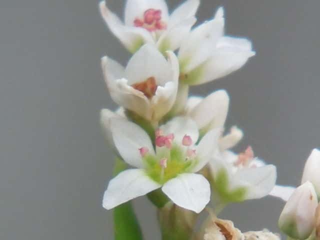 中国原産。高さは50〜70cm、茎は中空の円柱形で直立して分枝して、少し紅色を帯びる。 葉は心臓形で先は尖り、托葉は短く膜質の鞘状になる。花は茎頂や枝先に短い総状花序を出し、白色か淡紅色。花には、花弁がなく、萼が5深裂して、短期間で開花結実する。 果実は三角錐形。花期は8〜10月。