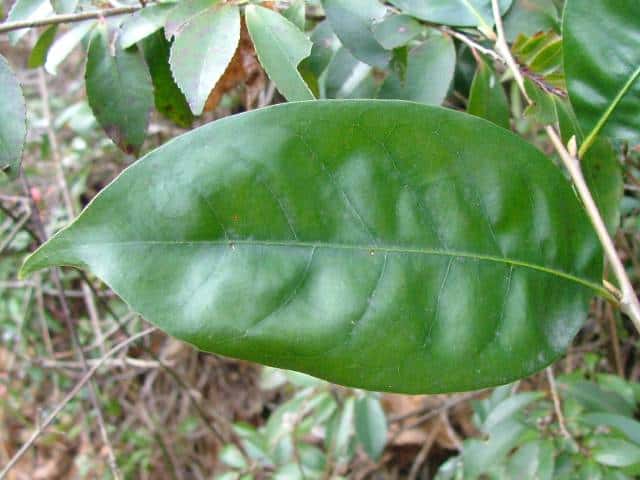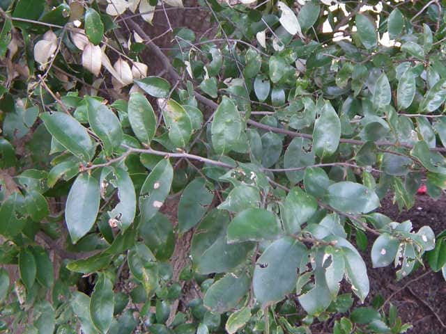 | ▼2007年11月10日 葉の上部に波状の鋸歯。 葉裏は光沢がある。 東忌部 | ||