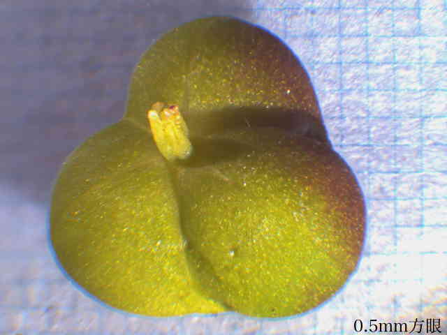 | ▼果実は3稜があり、中央に花柱が残る。 | ||