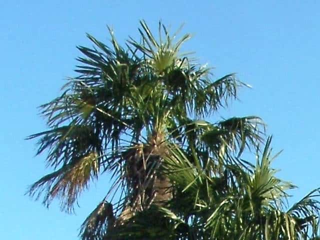 | ▼葉は古くなると先端が折れる。 | ▼幹には葉鞘網が密生する。 | ||