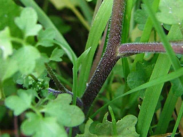 | 小葉が掌状に裂ける。 | 茎に白毛又は無毛 | 茎上の葉腋から出た腋芽が接地すると娘個体となり栄養繁殖。 |