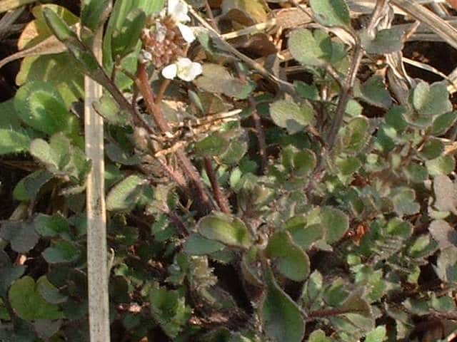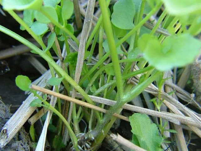| ミチタネツケバナ | | 根生葉が残る。 | 葉のふちが丸い。 | 茎は無毛、葉表・葉柄に散毛 | 果実は茎に付くように斜上する。 | 雄しべ4本が多い。冬でも開花。 |