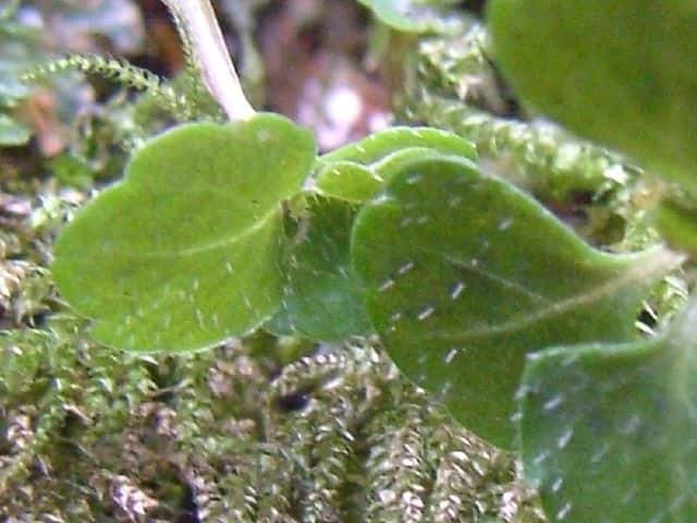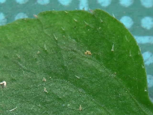 | ▼葉は長さ約8mm。 | ▼葉の表面には短毛が散生する。 | |