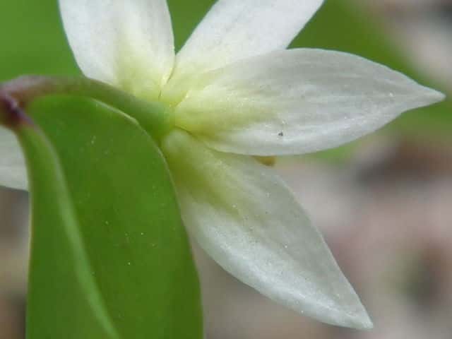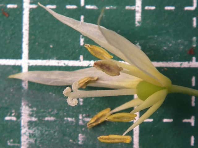 | ▼花被片は長さ約1.4cm。 | ▼葉は長さ約4cm。 | |