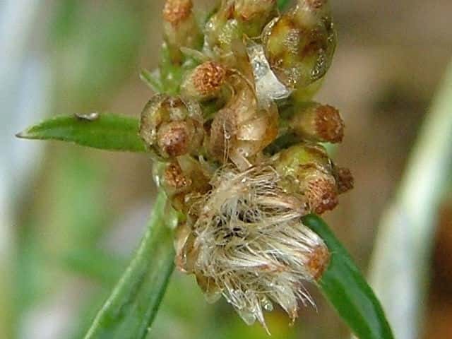 | ▼果実には長い冠毛がある。 | ▼開いた冠毛は直径約6mm。 | |