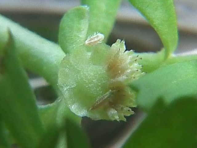 | ▼雌花の果実、長さ約1mm。 | ▼両性花の果実。 | |
