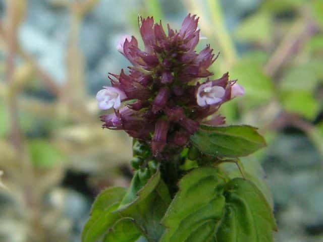 多年草 本州〜琉球のやや湿った道ばたに生える。茎は細く、束生して基部はややはい、上部は直立して高さ10〜30cm。葉は5〜10mmの柄があり、卵形〜広卵形で長さ1〜3cm、幅8〜20mm、ほとんど毛がなく、鈍頭、基部はやや円い。花は茎頂にやや断続的な花穂をつくって開き、小苞は長さ1〜3mmで短い。萼は長さ3〜4mm、脈状に短毛がある。花冠は淡紅色で長さ5〜6mm。分果は長さ約0.6mm。花冠は上下2唇に分かれ、下唇はさらに3裂する。雄しべ4個は斜上し、2個が長く、葯は上唇の内側にぶら下がっているように見える。萼は唇形で脈上にわずかに短毛がある。花期は5〜8月。(野に咲く花) 学名は、Clinopodium gracile シソ科トウバナ属 |