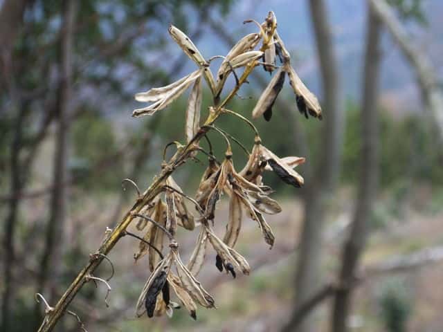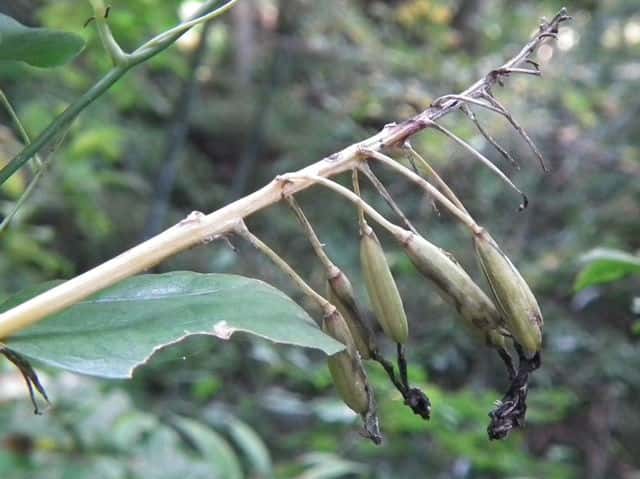 | ▼種子の拡大、長さ約3.5mm。 | ▼葉は既に枯れている。 | |