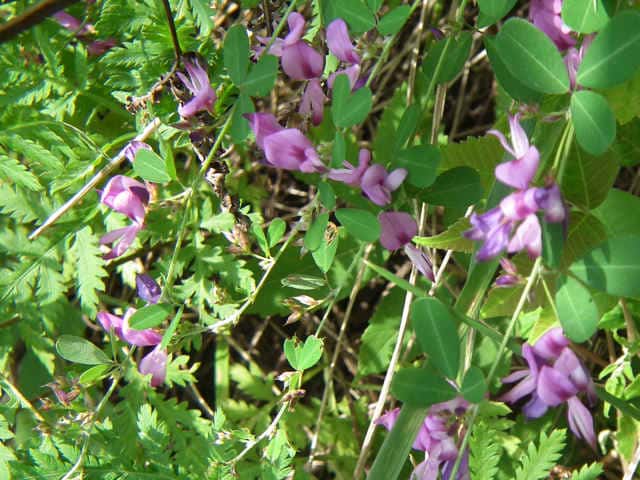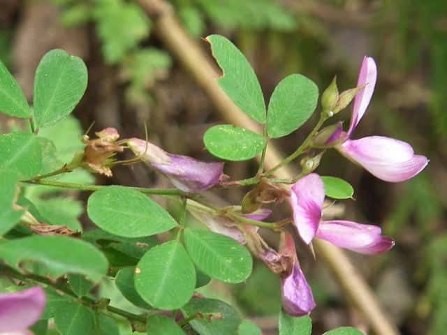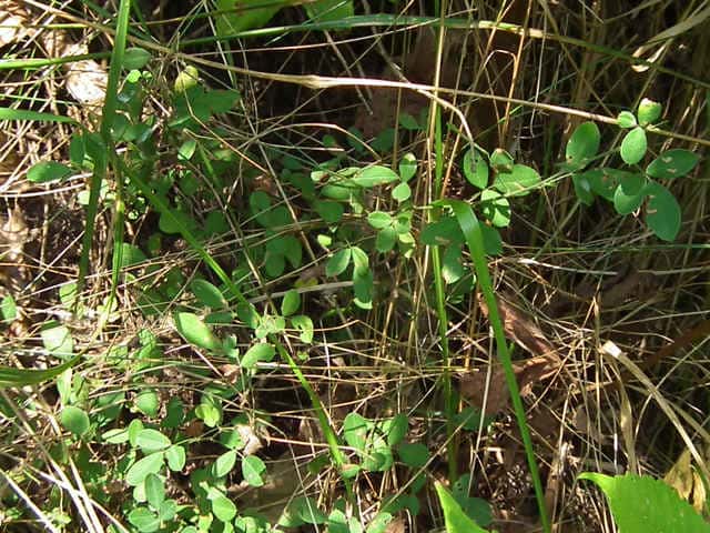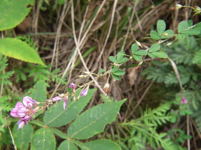 | 落葉小低木 中国原産の帰化植物で、法面緑化の種子に紛れて帰化している。 下記の詳細は、「中国植物志」を私が適当に日本語訳したので、間違った説明になっているかもしれない。 「茎は基部近くで分枝し、長さ30〜100cmになる。枝には稜があり、灰白色の毛がある。托葉は線形、長さ4〜5mm、先端は刺状。葉は3出複葉で、小葉は倒卵形、広倒卵形、長楕円形で、長さ1〜1.5cm、幅0.6〜0.9cm、先端はわずかに凹み、鈍角〜円頭、またはほぼ切形で、刺状突起がある。基部はくさび形。表面はまばらに伏毛があり、裏面は密に白い伏毛がある。側小葉はやや小さい。葉腋に総状花序を出し、明らかに葉の長さを超えて花柄を伸ばす。小苞片は卵形、長さ約1mm、先端は急に尖る。萼は長さ4〜5mm、白い伏毛が多い。5裂し、裂片は披針形又は卵状披針形、長さ2〜3mm、先端は次第に尖る。花は赤紫色、青紫色の多数の花をつけ、旗弁は楕円形、長さ8mm、先端は円形、基部は有柄。翼弁はやや短い。龍骨弁は旗弁より長く、鈍頭。果実は広卵形、長さ約7mm、宿存する萼から出て、毛が密生し、網状の脈がある。花期は6〜9月。」 学名は、Lespedeza floribunda マメ科ハギ属 |