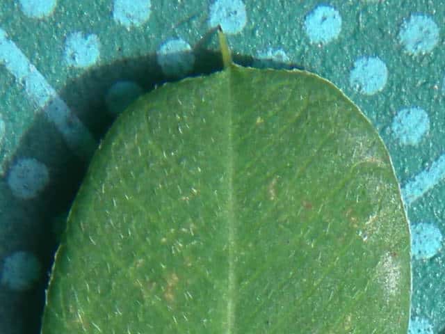 | ▼先がわずかに凹み刺状突起がある。 | ▼頂小葉は長さ約1.2cm。 | |