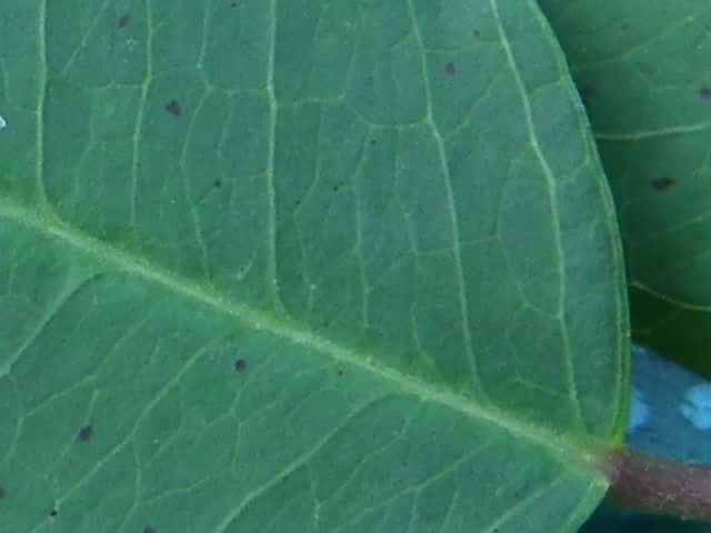 | ▼葉の表面は無毛。 | ▼葉の裏面は毛がある。 |