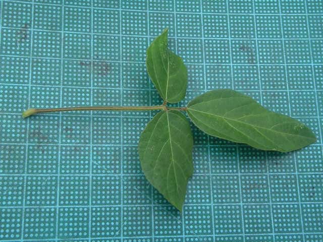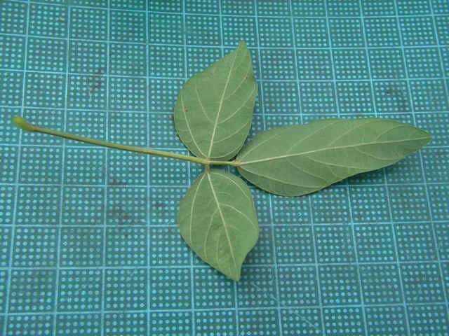 | ▼頂小葉は長さ約5cmある。 | ▼葉の表面に毛がある。 | |