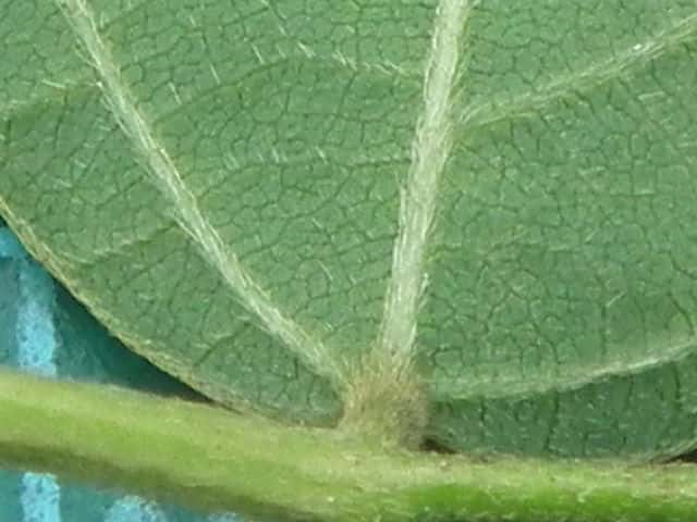 | ▼葉の裏面に毛がある。 | ▼茎や葉柄に毛が密生する。小さな托葉がある。 | ▼小葉の基部に小托葉がある。 |