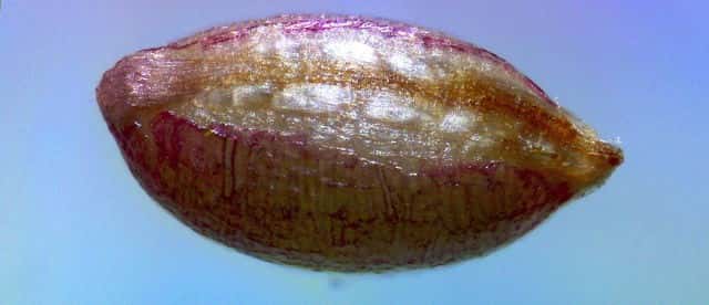 | ▼種子は長さ約1mm。 | ▼種子はスポンジ状の内果皮に包まれる。 | |