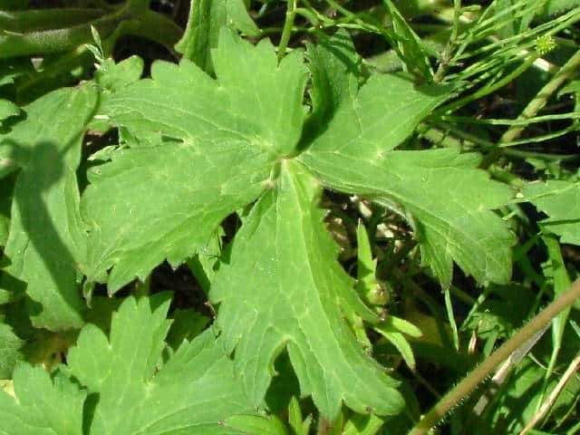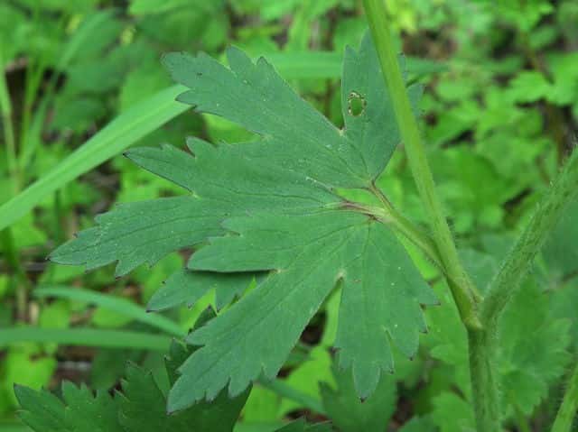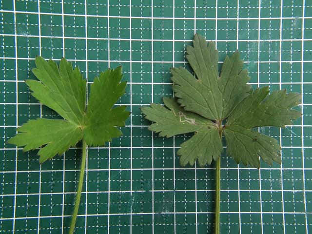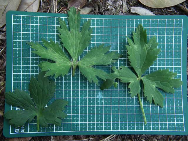 | ▼中部の葉は3深裂、葉柄はほとんどない。 | ▼根生葉は長い柄があり3中裂。 | ▼根生葉は3中裂〜3深裂する。 |