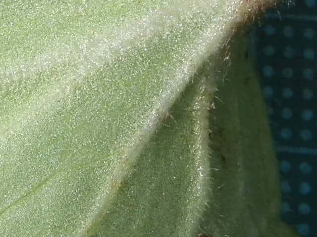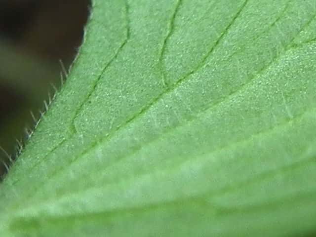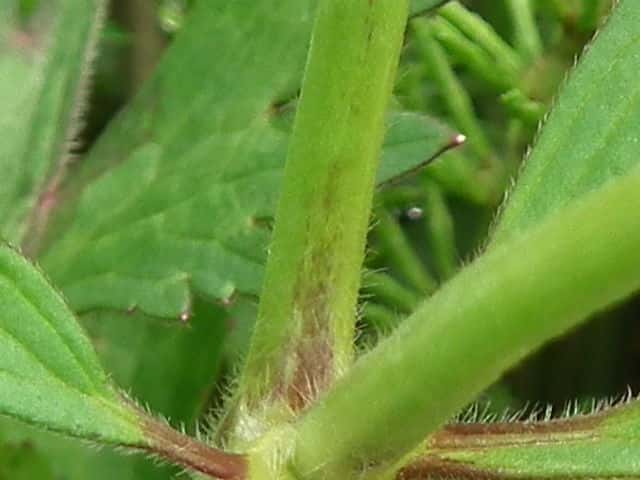 | ▼葉の表面には伏毛がある。 | ▼葉柄に開出毛がある。 | |