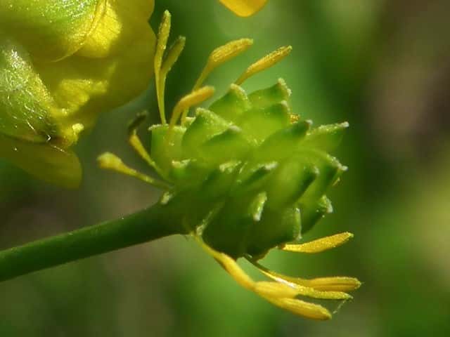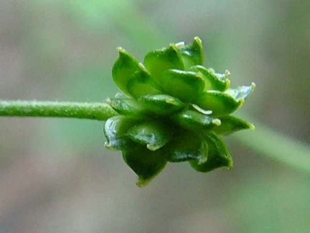| ▼集合果はほぼ球形、長さ約8mm。 | ▼果実は未熟なものを含めて47個あった。 | ▼果実は長さ約2.5mm、花柱はごく短い。 |