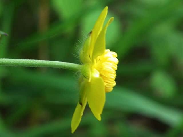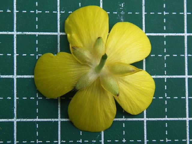 多年草 北海道〜沖縄の日当たりのよい山野に普通に生える。茎は高さ30〜70cm、開出した白毛を密生し、縦にすじがあり、中部以上はよく分枝する。根出葉は開出毛のある長柄があり、腎円形で掌状に3〜5中〜深裂し、裂片はさらに2〜3浅〜中裂、不ぞろいな鈍鋸歯があって基部は心形、幅4〜8cm、両面にねた毛がある。茎葉は短柄があり、3深裂、裂片は3中裂で鋸歯縁、幅5〜9cm、上部のものの裂片は線形、全縁。花柄は2.5〜7cm。萼片は5個、楕円形、舟形、長さ5〜6mm、背部に毛がある。花弁は5個、黄色で光沢があり、広倒卵形または倒卵形、長さ8〜11mm、基部は爪となり、蜜腺がある。雄しべは多数、花糸は無毛、長さ2.5〜3.5mm、葯は1〜1.3mm。集合果は球形。そう果は倒卵円形、長さ2〜2.5mm、無毛、花柱は短く、少し外曲する。花期は4〜6月。(原色日本植物図鑑) 学名は、Ranunculus japonicus キンポウゲ科キンポウゲ属 根生葉はゲンノショウコとよく似ている。 ゲンノショウコとの葉の比較 また花がよく似て、葉が3出するキツネノボタン、ケキツネノボタンなどがある。 よく似た花。 |