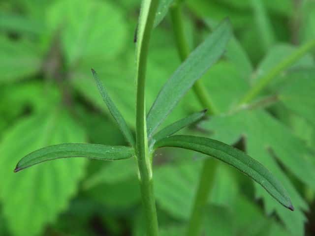 | ▼中部の茎葉。 | ▼上部の茎葉はほとんど葉柄がない。 | ▼根生葉には長い葉柄がある。 |