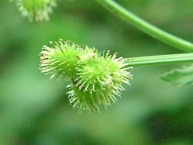 | ▼2012年7月10日 東出雲 | ▼両性花と雄花が混在する。かぎ状毛があるのは両性花。 | |