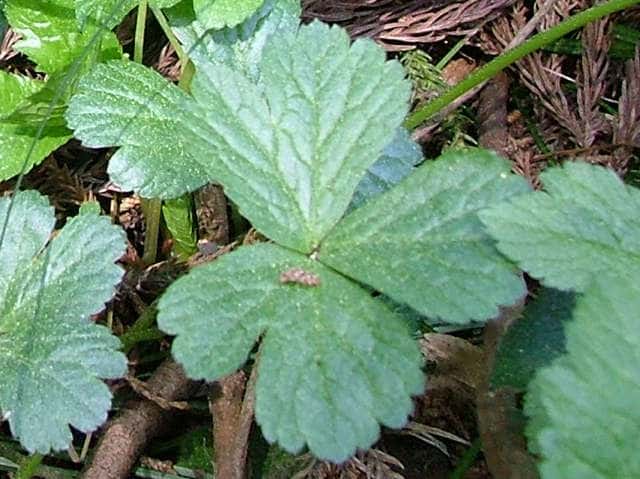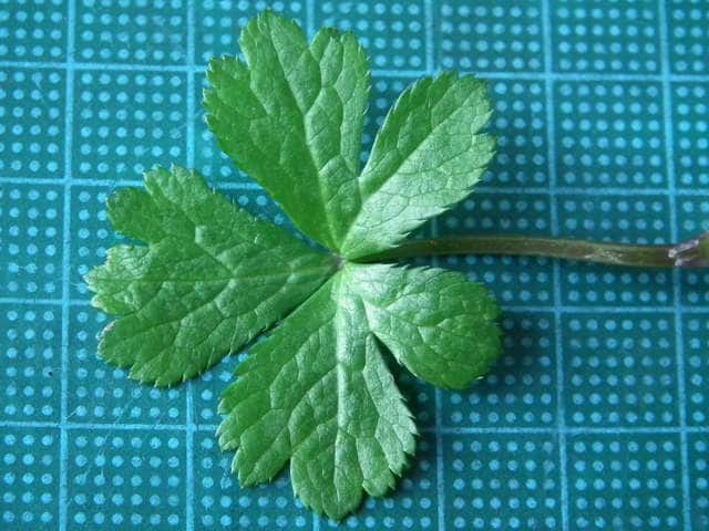 | ▼側小葉は2裂しないが、大きな鋸歯がある。 | ▼葉身は長さ約4.5cm。 | ▼葉柄の基部。 |