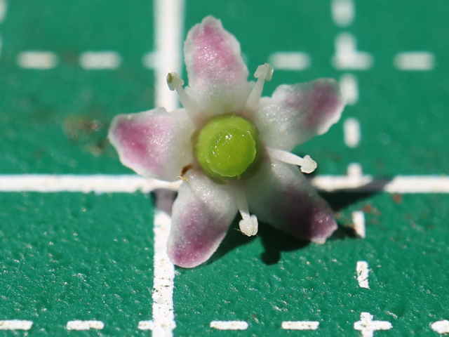 | ▼花は直径約7mm、退化した雄しべがある。 | ▼萼片はごく小さい。 | |