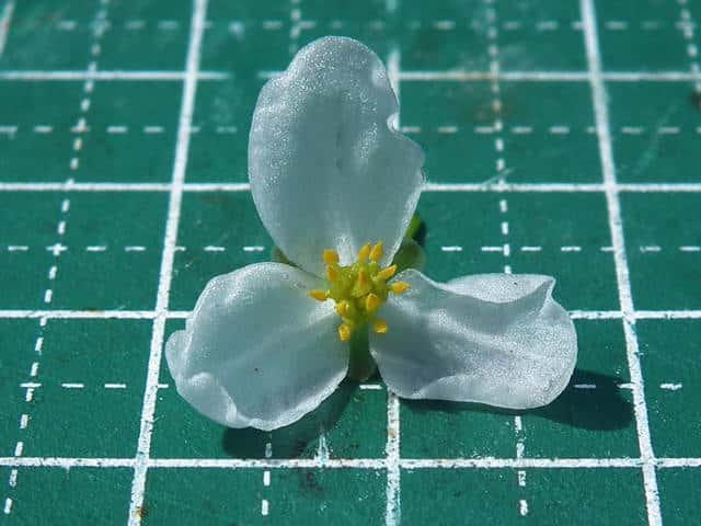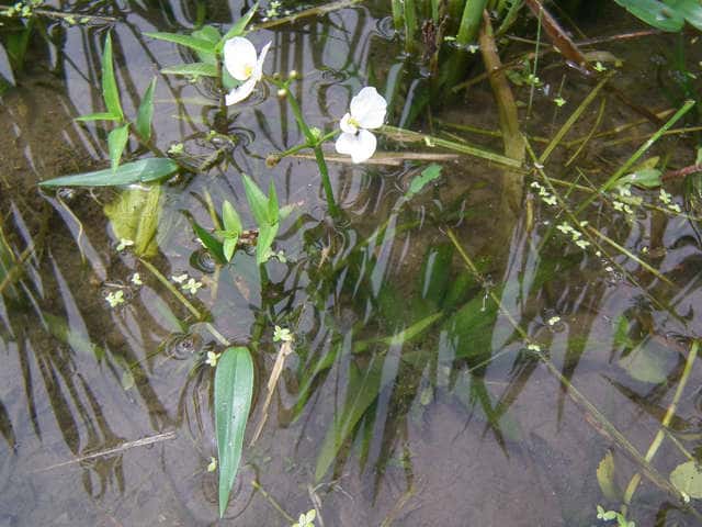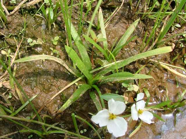 | 多年草 本州〜沖縄の主に水田に生える抽水〜湿生植物。葉は根生し、線形、ときに先端部の幅が広くなり細い匙形。長さ4〜18cm、幅3〜10mmでやや厚みがある。先端は鈍頭。花茎は高さ5〜20(〜30)cm。花弁は3枚で白色、雄花と雌花がある。果実偏平、長さ約5mm、突起のある翼が発達。集合して球状になる。秋に走出枝が伸び、地中に直径3〜6mmの塊茎を形成して越冬する。花期は7〜9月。(日本の水草) 雌花はふつう無柄で、花序の下部に1〜2個つく。(日本の野生植物) 学名は、Sagittaria pygmaea オモダカ科オモダカ属 似た花に葉が披針形で葉柄があるヘラオモダカや葉がやじり形になるオモダカがある。 |
