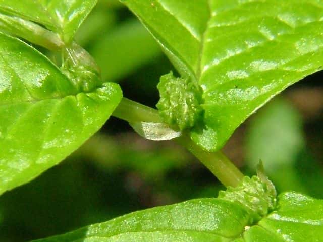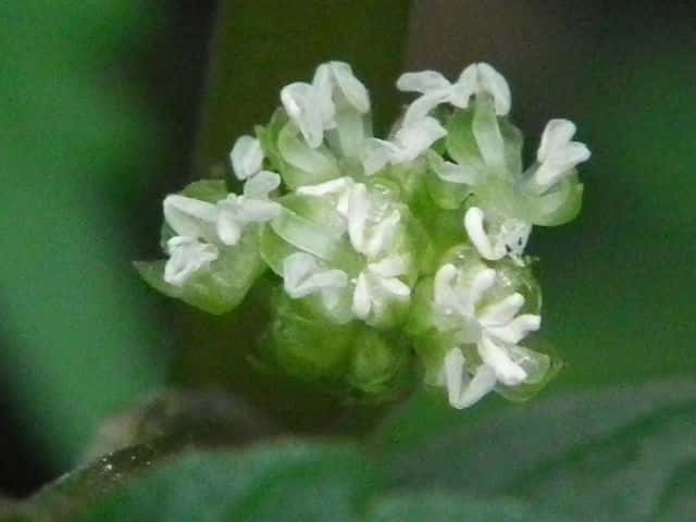 | ▼花序に長さ1mmほどの柄がある。 | ▼雌花は3個の花被片に包まれる。 | |