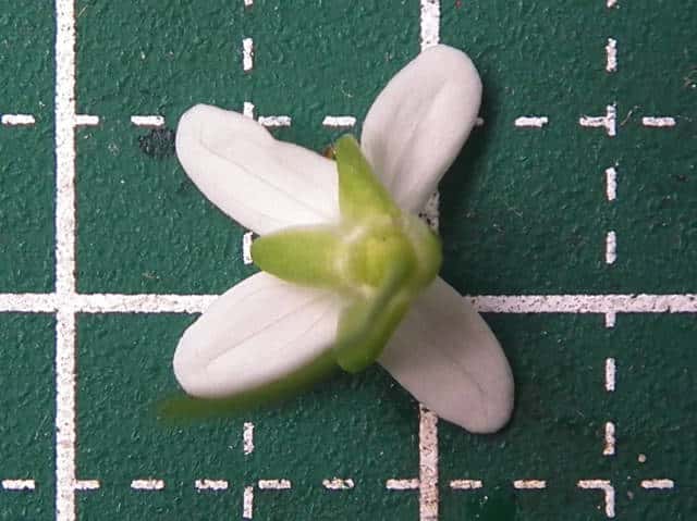 | ▼花は長さ約2.5cmの花柄がある。 | ▼花は直径約1cm。 | |