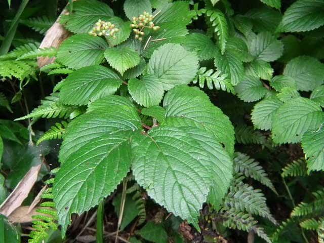 | 葉身はそれほど長くないが、葉裏の毛が少ないので、ケナシヤブデマリではないかと思われる。 |