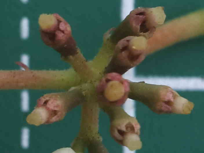 | ▼両性花は直径約5mm。 | ▼花後の若い果実。 | |