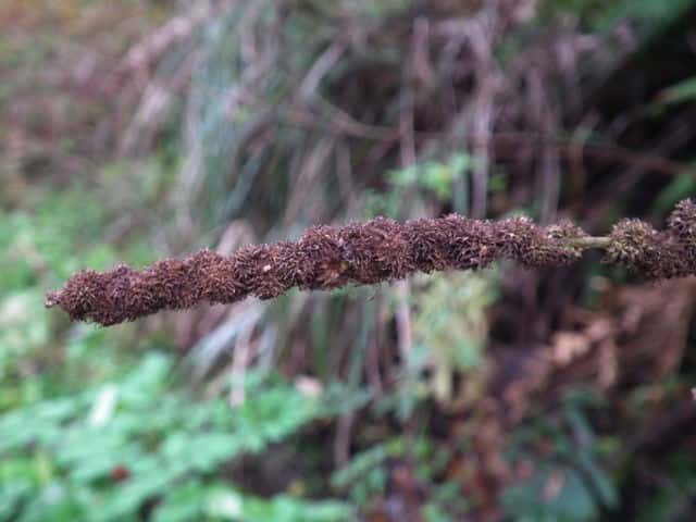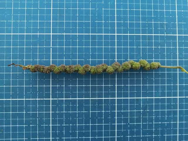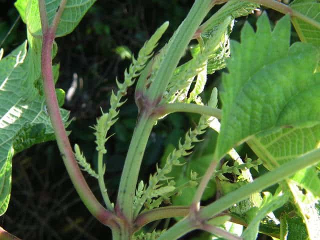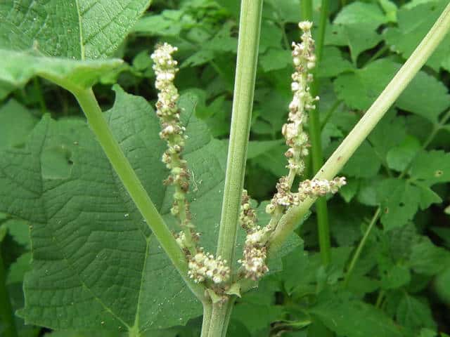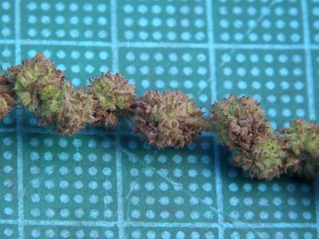 | ▼下部の雌花序が分枝し、雄花序はない。 | ▼分枝する雌花序は長さ約25cm。 | |