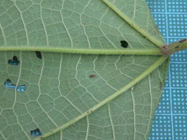 | ▼葉裏は全面にビロード状の毛がある。 | ||