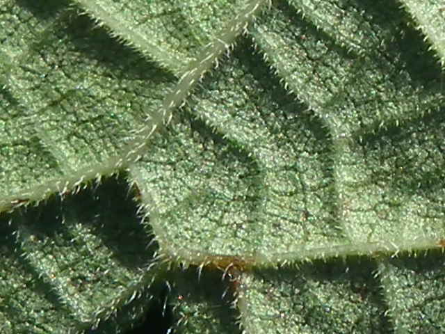 | ▼葉の表面の毛。 | ▼葉裏には毛が密生する。 | |