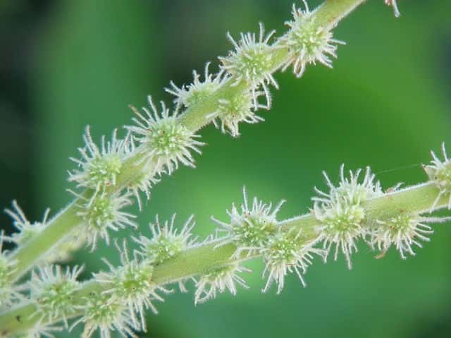 | 中海から約400m離れた田園の川岸に生え、下部に枝分かれをした雌花序をつけるもの、また雄花序をつけるものがあった。 | ||